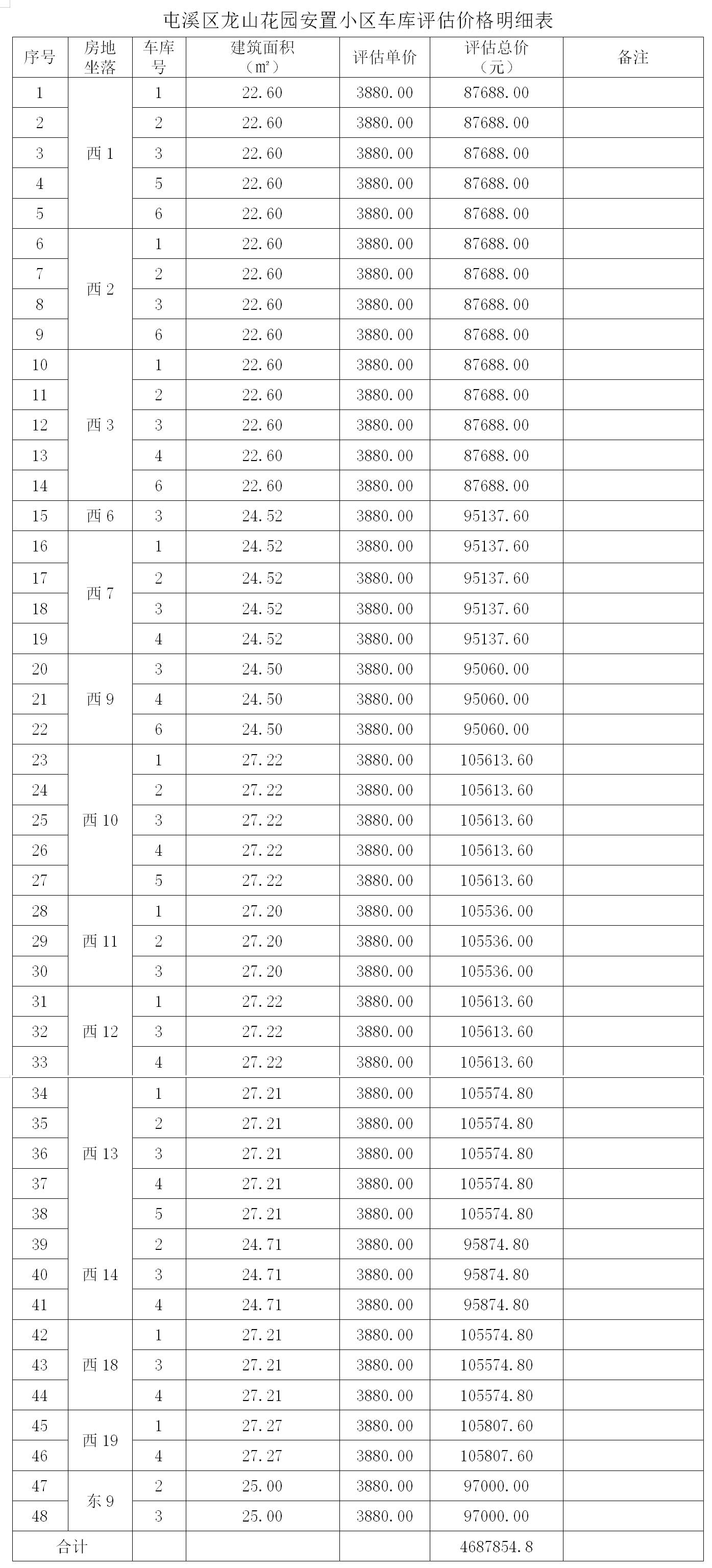 經(jīng)初步評(píng)估每平方米3880元(詳見(jiàn)附表);此次處置的車庫(kù)不辦理產(chǎn)權(quán)證。